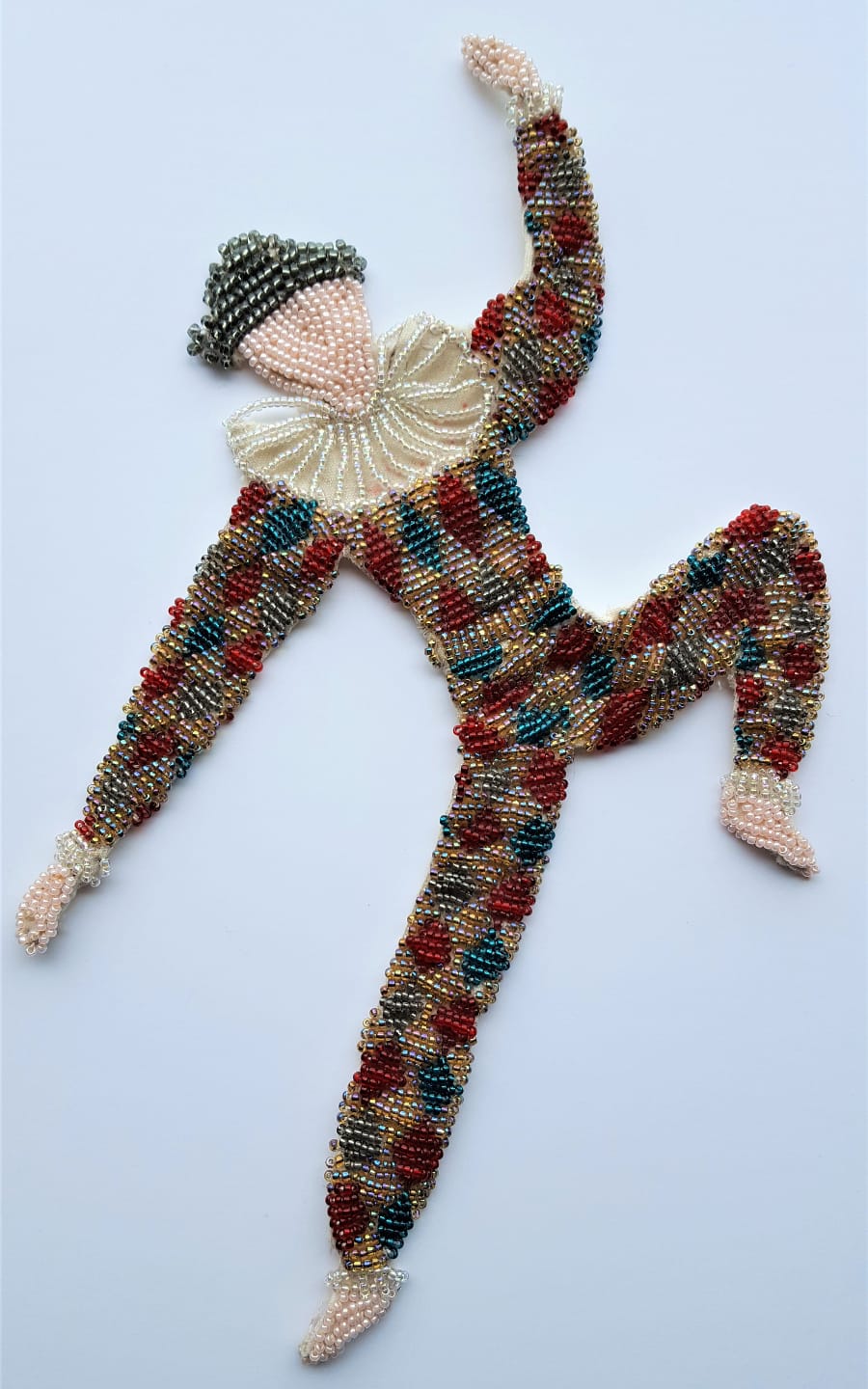 Since I was around 10 years old I've been buying, sorting and occasionally making things with beads. It began with creating little bracelets on a loom, then some Danish bead stars from a pattern I stumbled across in a craft magazine and then, for art GCSE, this harlequin (below) came into being, inspired by Picasso's various early-career harlequin paintings.