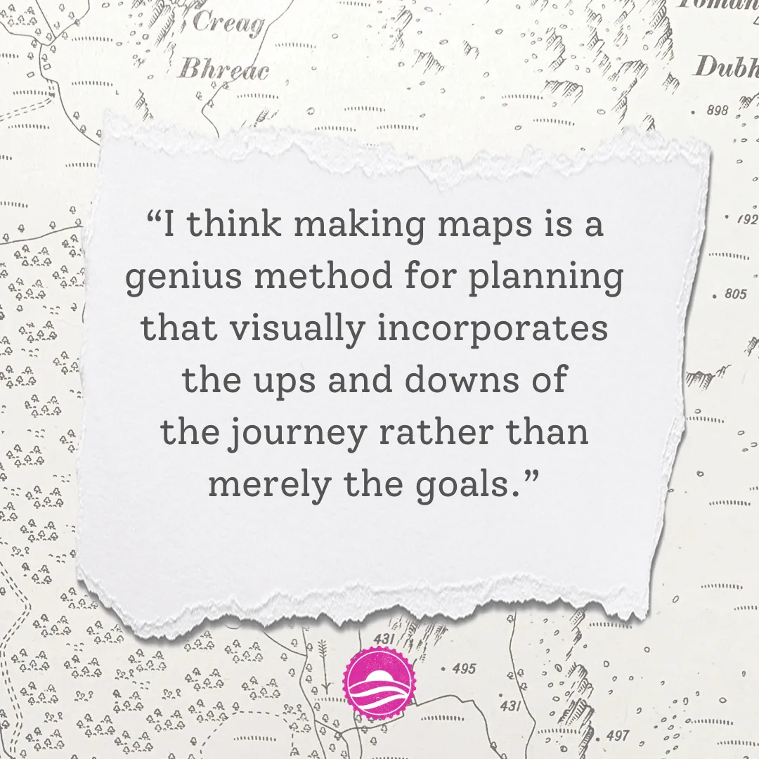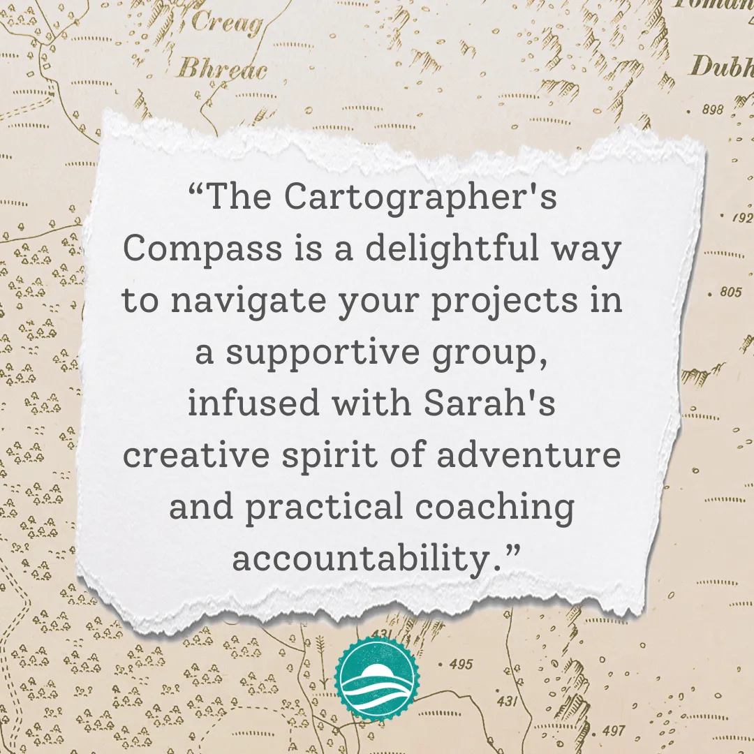 "The Cartographer's Compass is a delightful way to navigate your projects in a supportive group, infused with Sarah's creative spirit of adventure and practical coaching accountability. I loved how she encouraged us all to draw on every kind of map - from floor plan to phrenology - in search of our best year ever." Participant in the 2025 cohort.